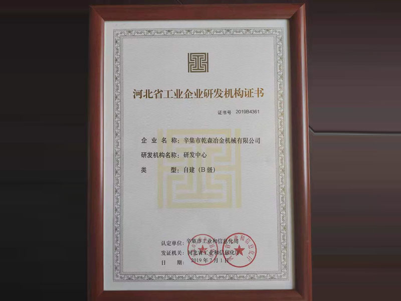 河北省工業(yè)企業(yè)研發(fā)機(jī)構(gòu)證書